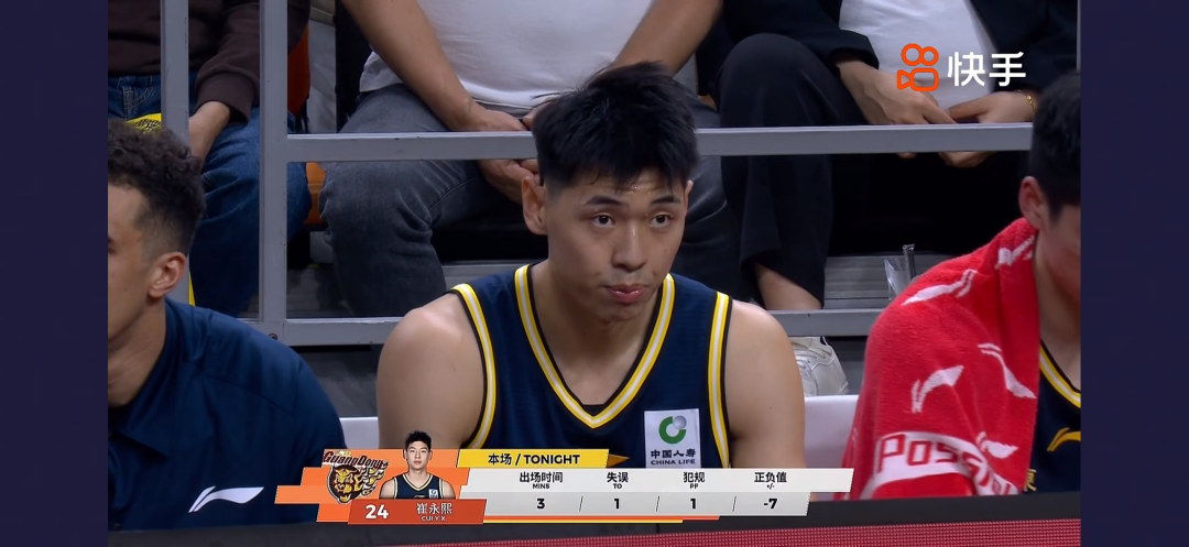 崔永熙在第一节还剩一半的时间出场,伤缺458天之后迎来首秀,但在对抗拉满的辽粤大战,崔永熙还没有找到比赛节奏,吃到1次犯规和1次失误之后他被替换下场。